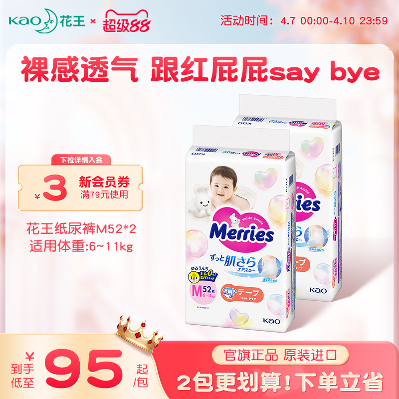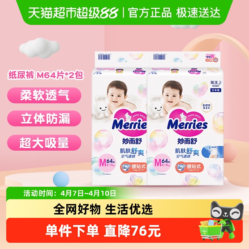 日本进口花王妙而舒纸尿裤M64*2超薄透气干爽贴身婴儿尿片尿不湿