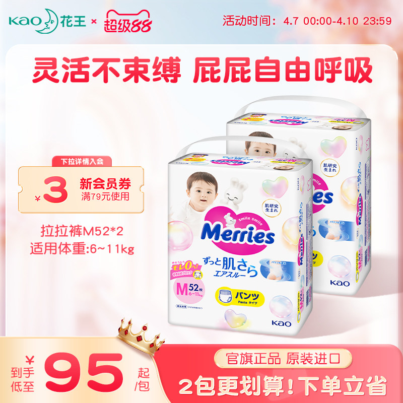 花王妙而舒婴儿宝宝拉拉裤M-XXL*2学步裤尿不湿尿片超薄透气官方