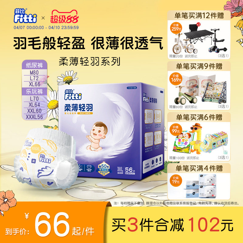 菲比柔薄轻羽XXXL56婴儿拉拉裤尿片超薄尿布尿不湿正品透气乐玩裤