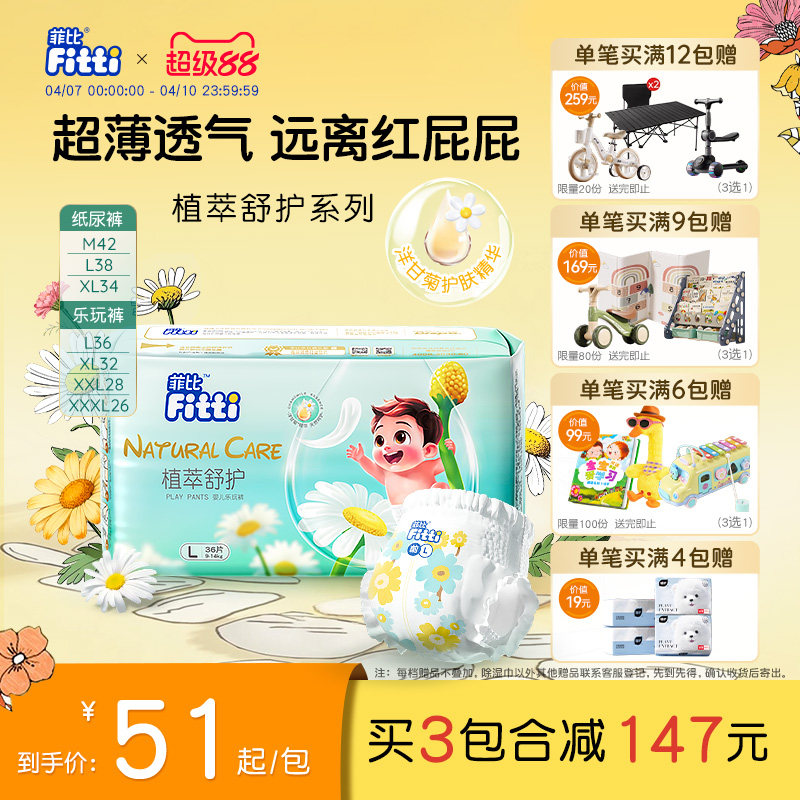 菲比植萃舒护婴儿纸尿裤S-XXXL拉拉裤尿片超薄透气尿不湿夏季轻薄