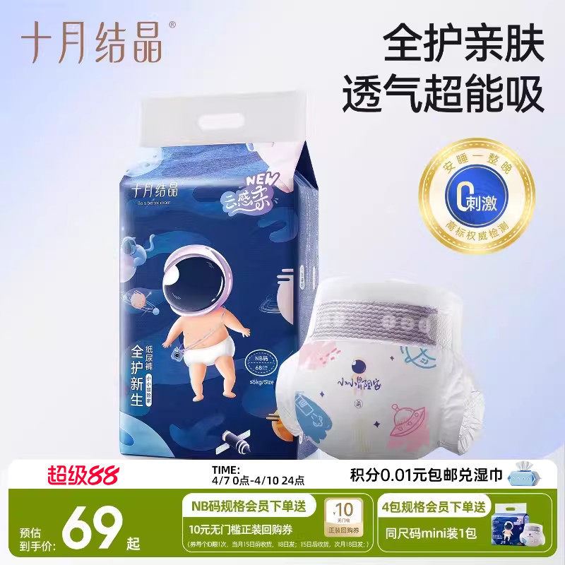 十月结晶新生婴儿纸尿裤超薄透气超柔干爽宝宝亲肤尿不湿尿片nb码