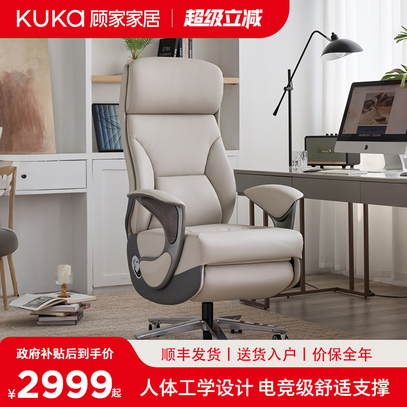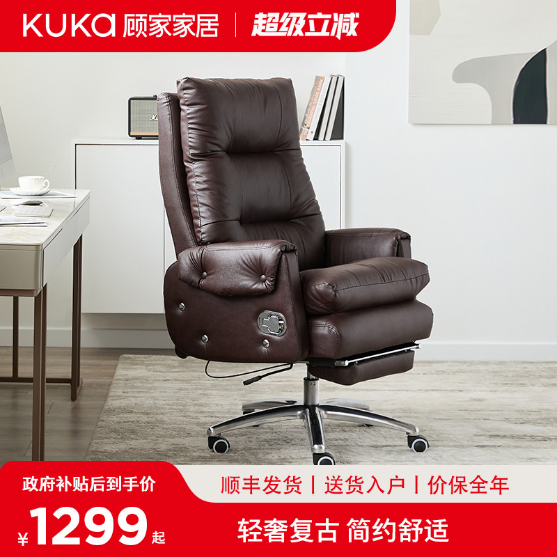 顾家家居沙发椅电脑椅复古真皮书房老板椅可躺午睡久坐舒适办公椅