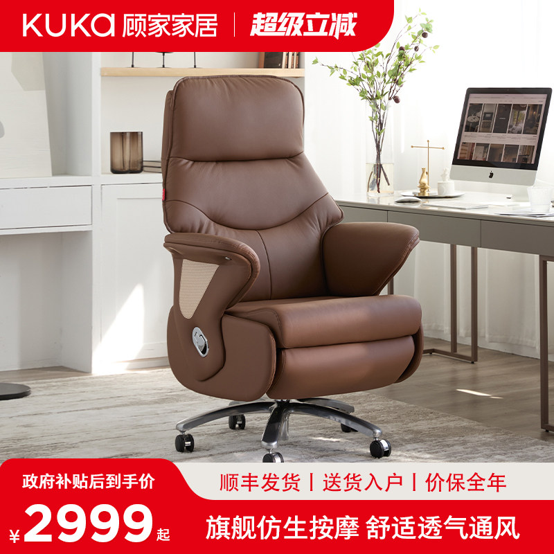 顾家家居电动按摩老板椅可躺午休办公椅舒适久坐电脑椅真皮靠背椅