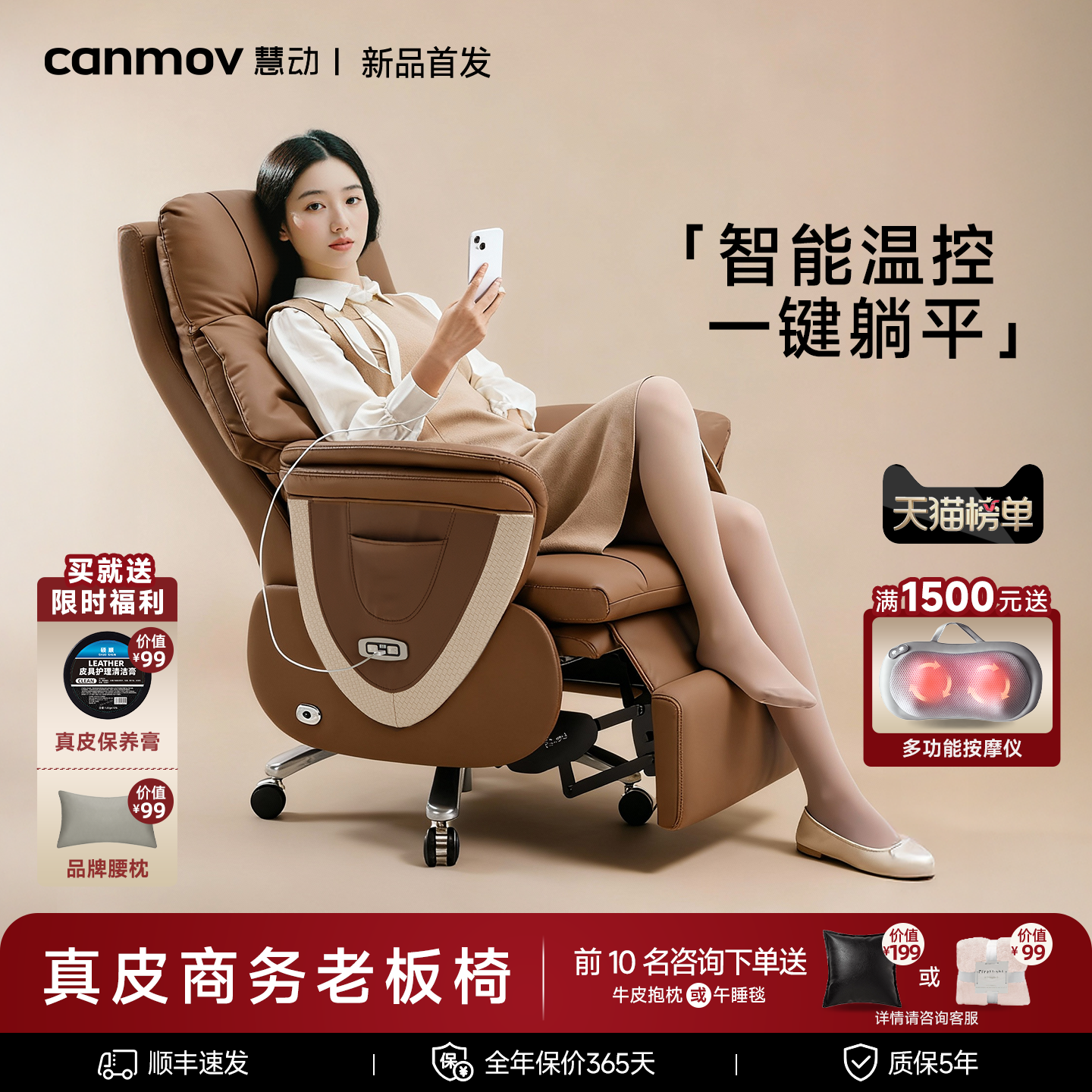canmov电动老板椅可躺真皮电脑椅久坐办公室按摩椅午睡人体工学椅