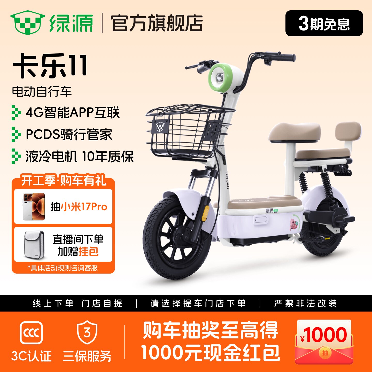绿源卡乐11电动自行车新国标长续航智能女生小型电动车门店自提