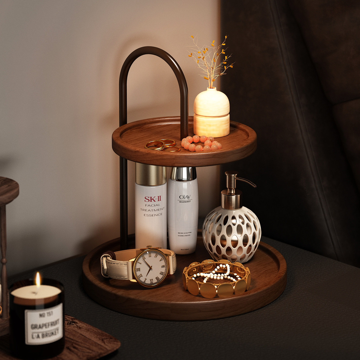 小西家 北欧风ins铁艺皮革双层收纳架 家居摆件置物首饰盘展示架
