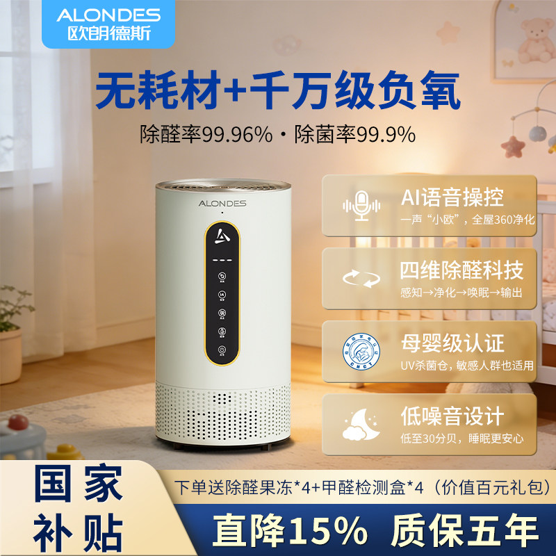 欧朗德斯空气净化器家用除甲醛母婴级无耗材除菌智能除醛仪大面积