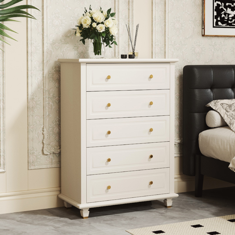 慕盛家具美式实木斗柜五层六抽屉法式奶油白色小户型家具卧室客厅