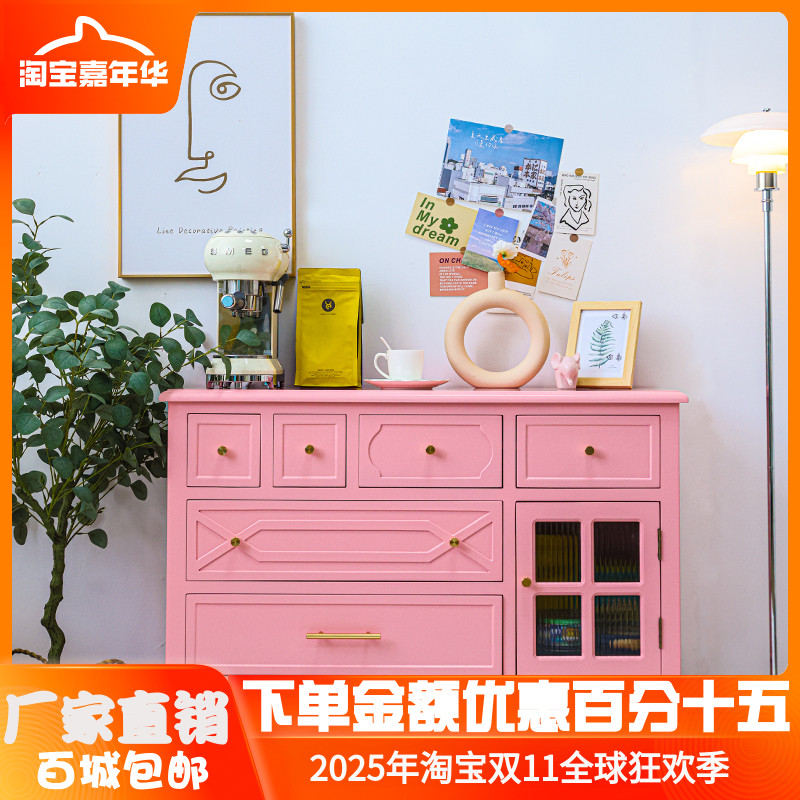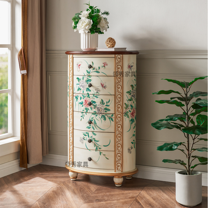 美式实木斗柜客厅靠墙收纳储物柜卧室抽屉式小柜子多功能彩绘立柜