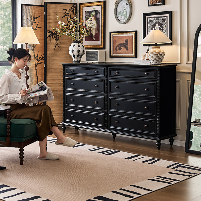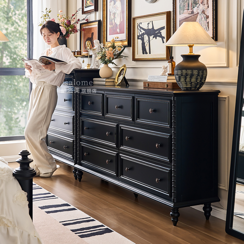 美式实木斗柜主卧室客厅靠墙储物柜子黑色法式复古床尾收纳抽屉柜