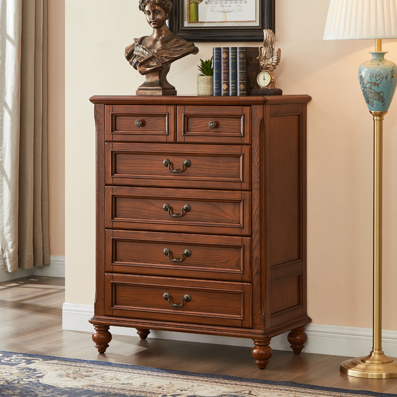 美式实木斗柜复古柜卧室靠墙储物柜床尾置物柜收纳柜五斗柜九斗柜