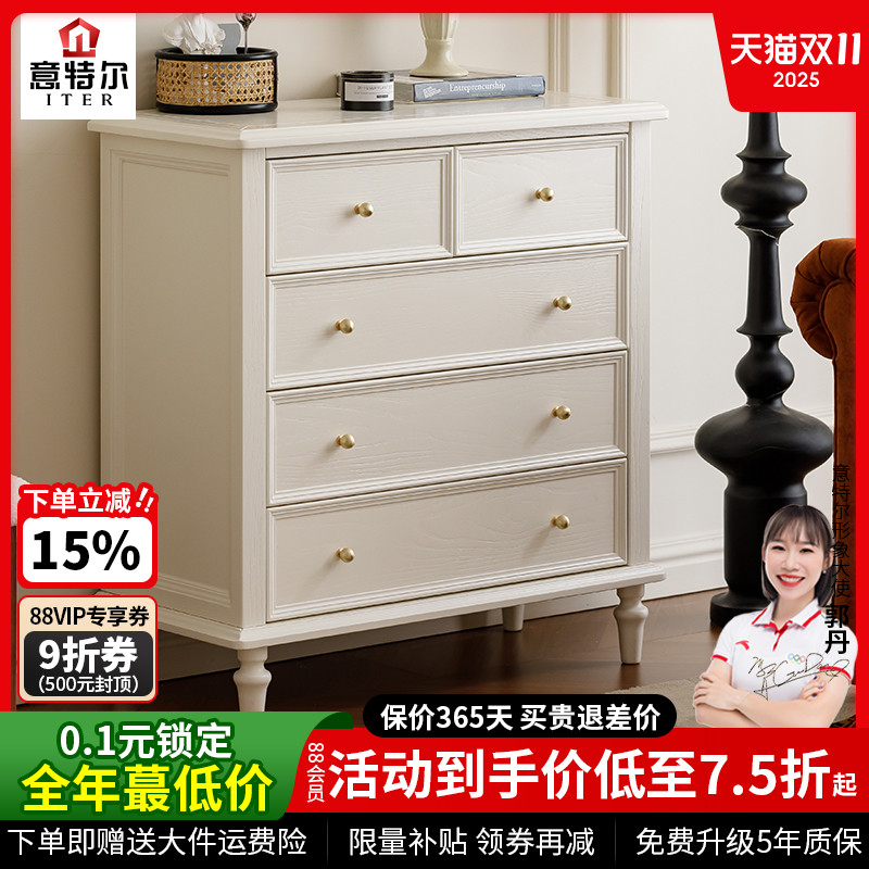 英范美式实木斗柜卧室法式奶油风白色轻奢抽屉玄关客厅储物收纳柜