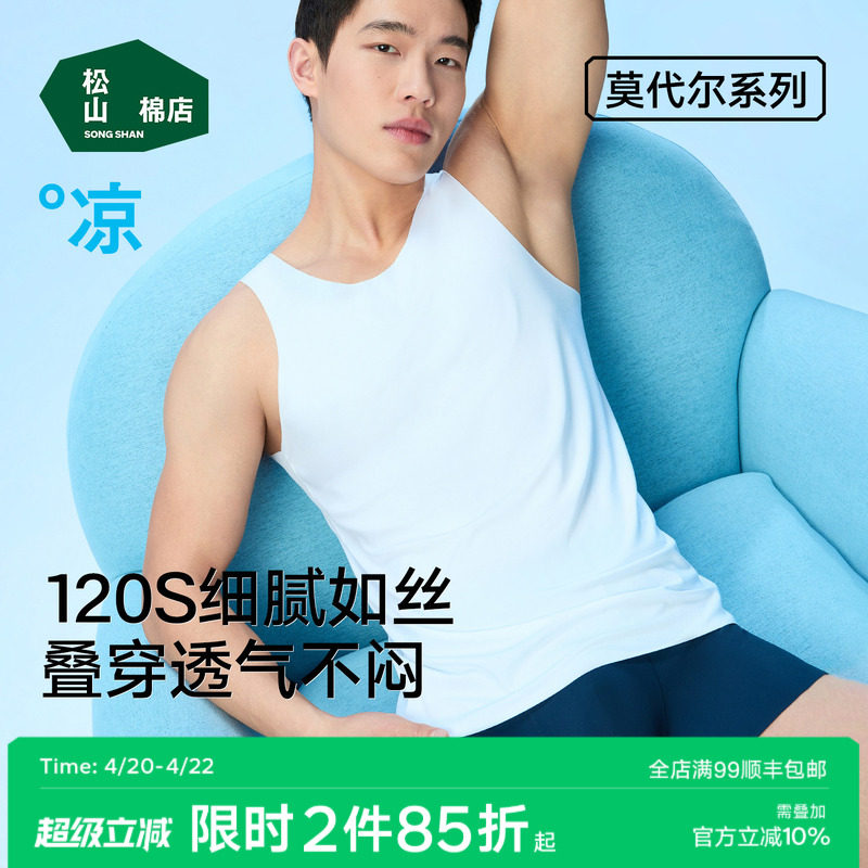 松山棉店男士莫代尔背心春夏季简约无痕圆领纯色打底衫弹力汗衫男