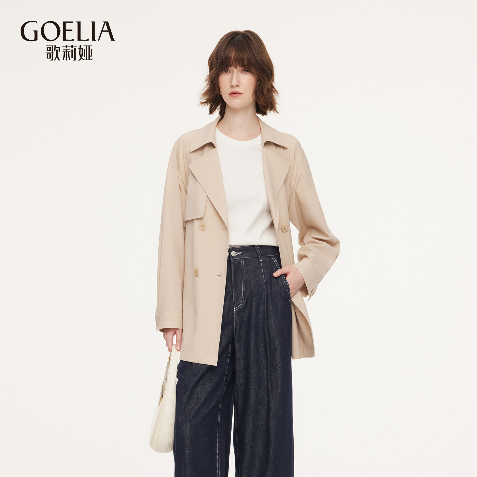 - 双排扣翻领风衣女