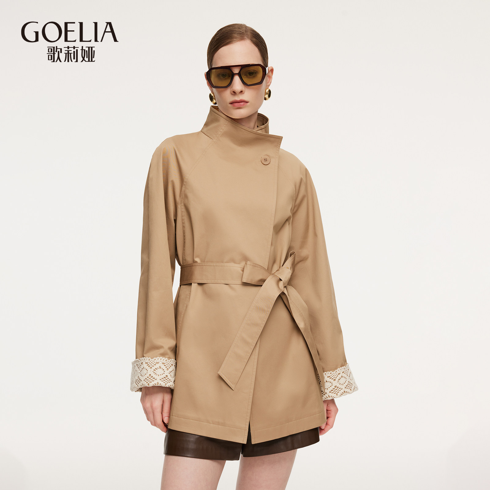 DPLAY2026年春季新款卡其色短款风衣外套女好看气质收腰大衣上衣