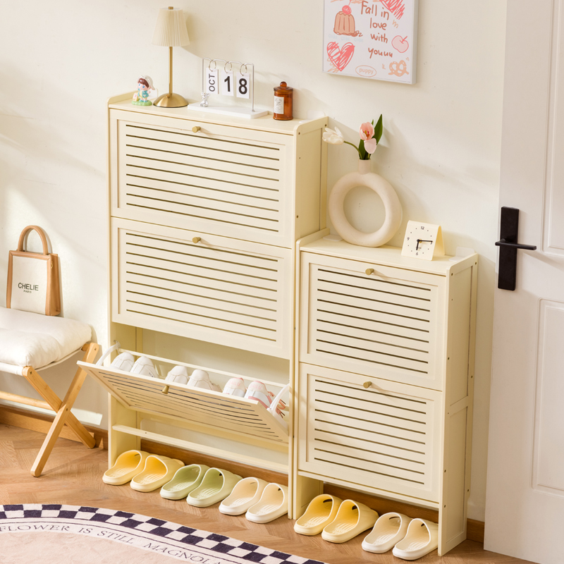 奶油风超薄鞋柜靠墙家用翻斗玄关柜新款2025爆款多功能收纳柜鞋架