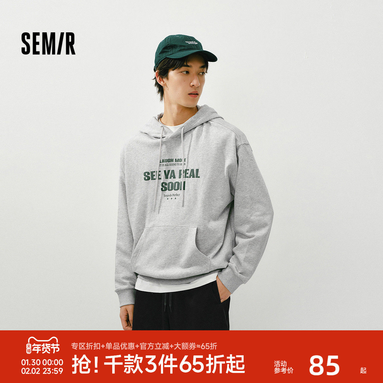 森马卫衣男春季时尚字母印花上衣情侣宽松抽绳连帽服简约百搭通勤