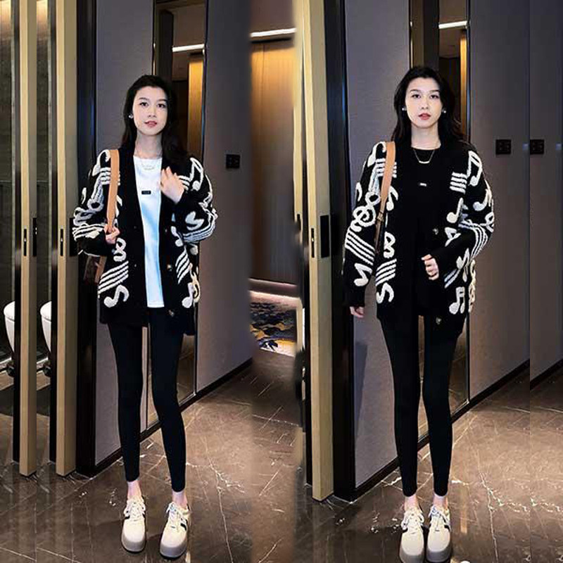 秋冬季毛衣开衫外套黑色长袖上衣外套潮慵懒风时尚中长款针织衫女