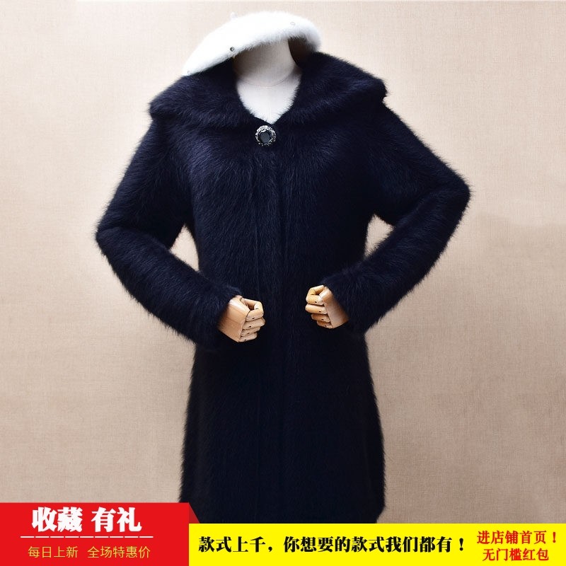 冬季加厚中长款ins长毛貂绒优雅风黑色立领修身显瘦外套毛衣女200