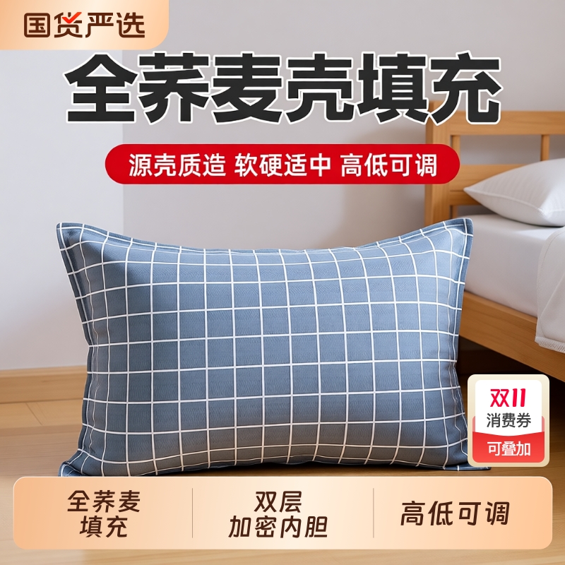 全荞麦枕头枕芯护颈椎助睡眠家用宿舍全棉纯荞带枕套可拆水洗乔麦