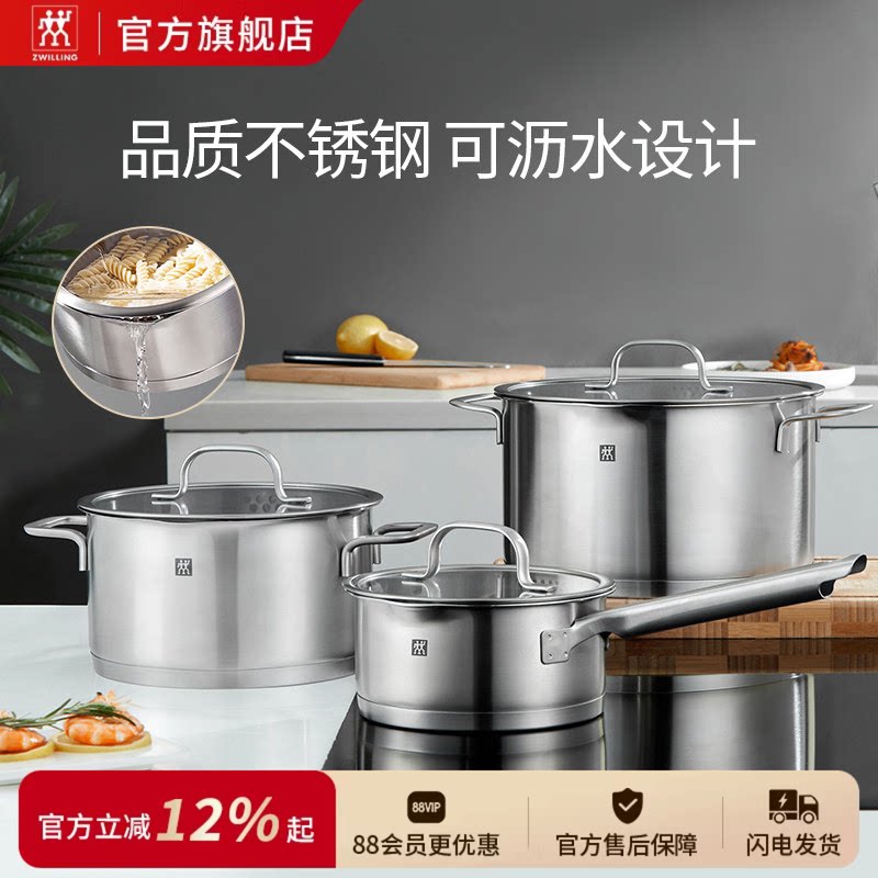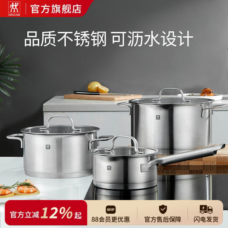 德国双立人无涂层不锈钢304汤锅家用炖煮0涂层奶锅电磁炉燃气汤锅