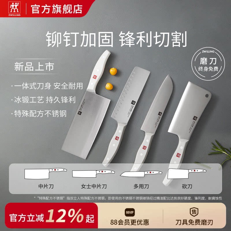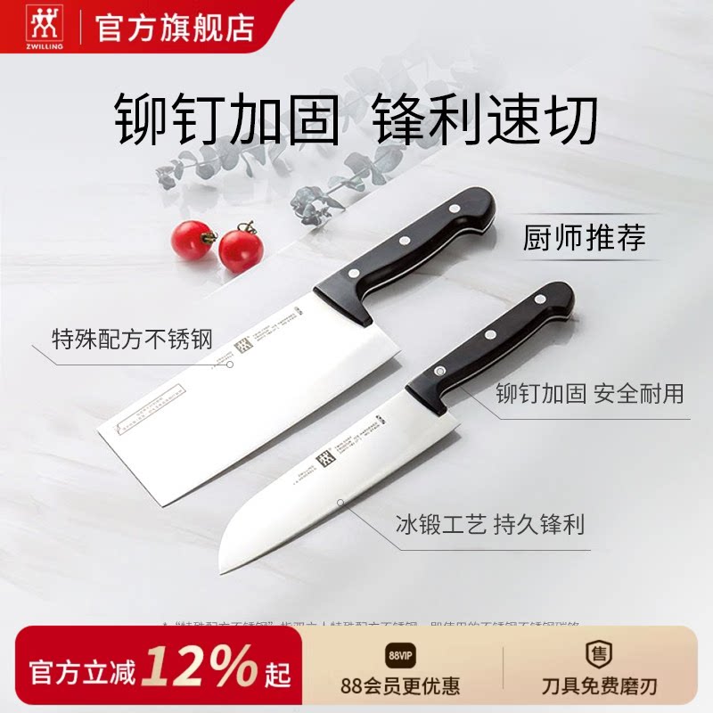 德国双立人Chef刀具菜刀家用不锈钢切片刀切菜刀厨房刀具铆钉加固