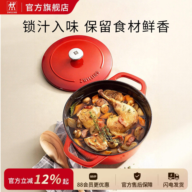 德国双立人20cm铸铁锅珐琅锅家用蒸锅炖锅煲汤精致电磁炉一锅多用