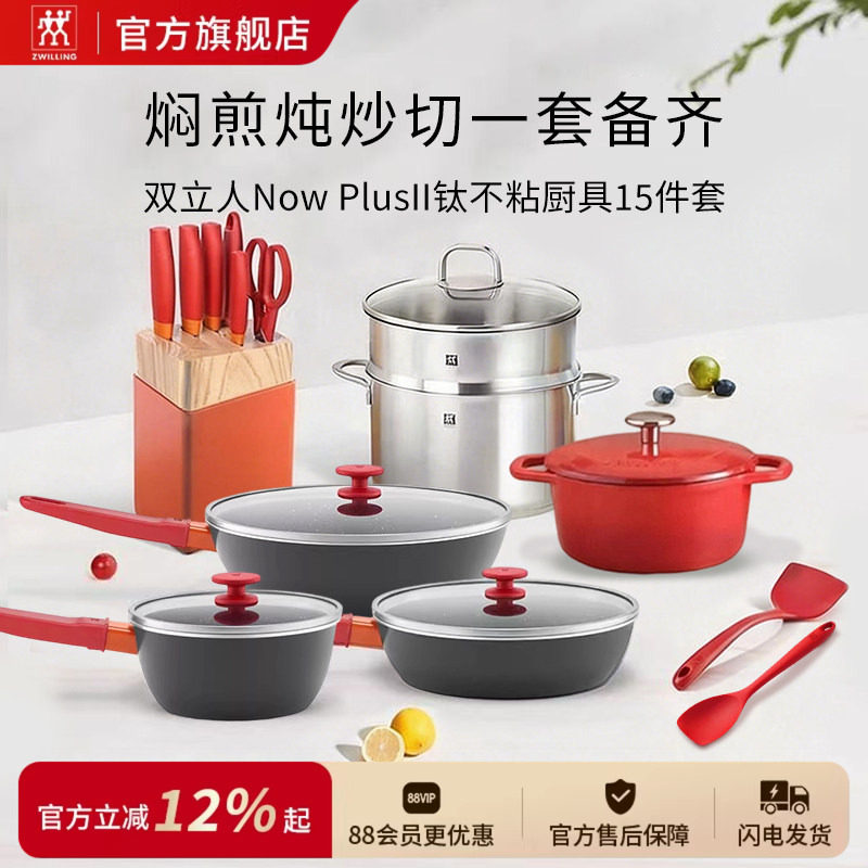 德国双立人Now Plus II钛不粘厨具15件套家用套装不粘锅刀珐琅