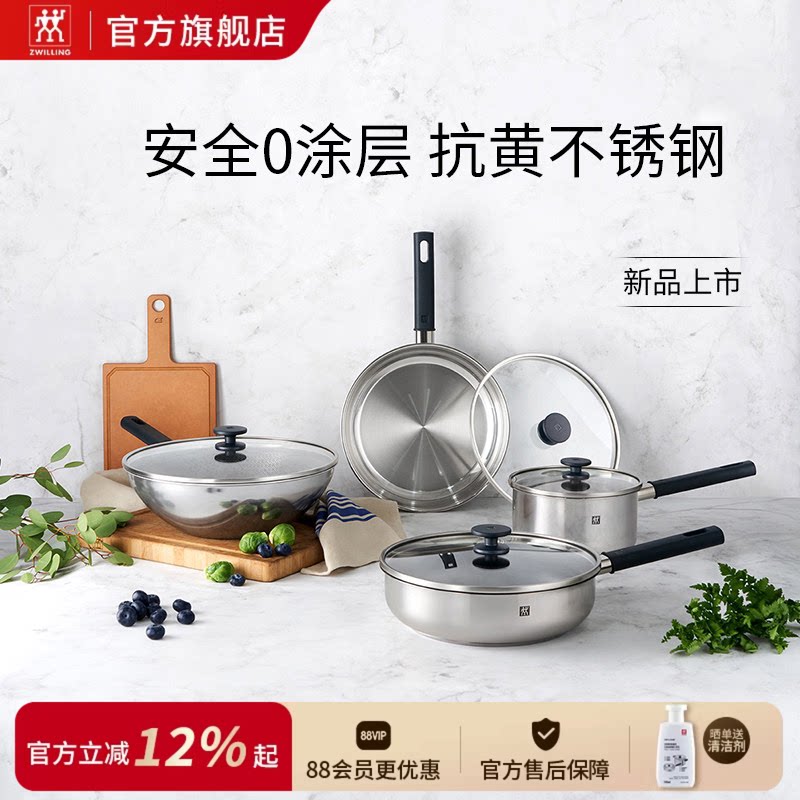 德国双立人含钛不锈钢炒锅silver银光系列0涂层抗黄炒菜煎锅奶锅