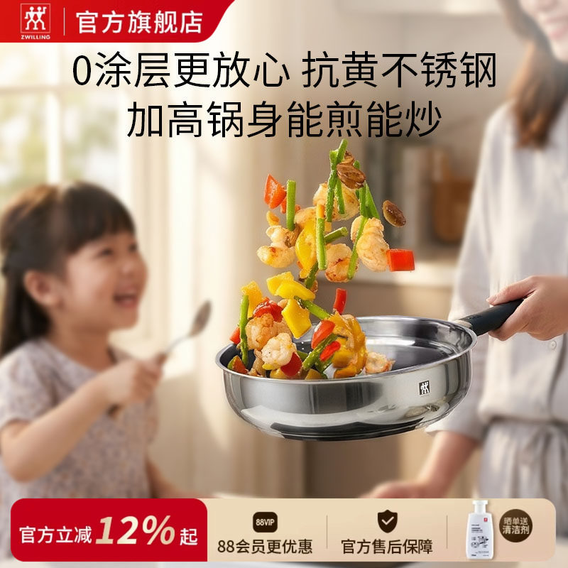 德国双立人Specials炒锅不锈钢锅家用0涂层炒菜锅锅具无涂层