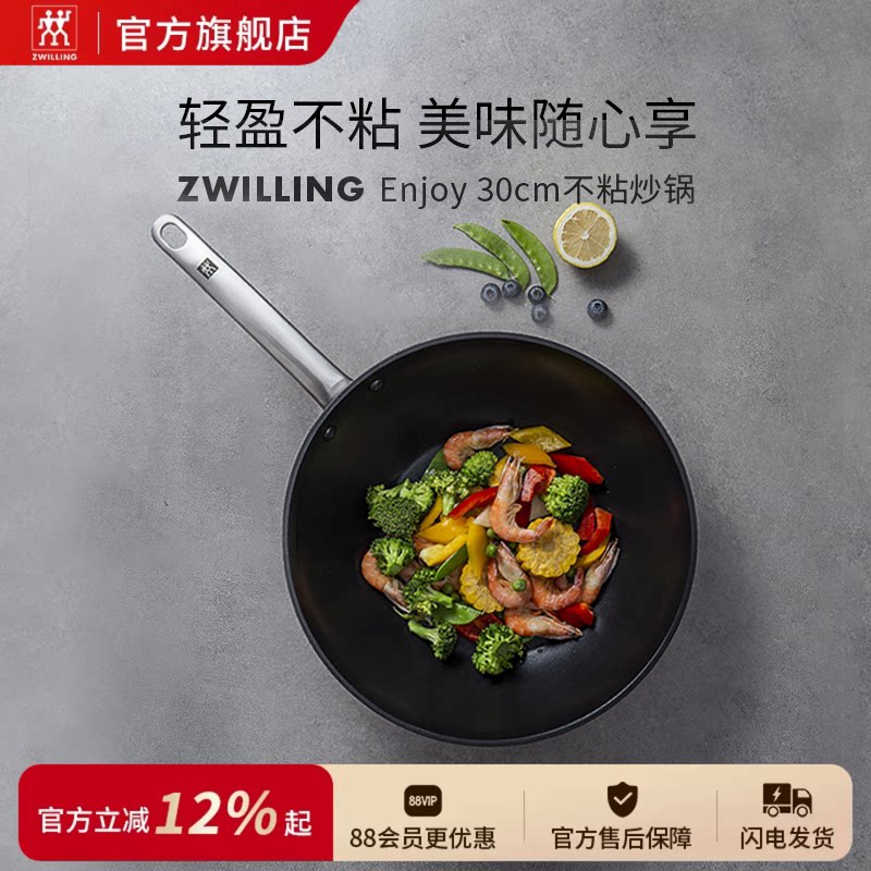 德国双立人Enjoy24/30cm炒锅不粘锅家用炒锅燃气灶电磁炉通用