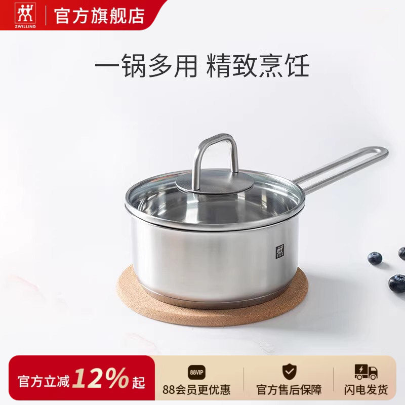德国双立人True Flow无涂层家用不锈钢0涂层小奶锅泡面宝宝辅食锅