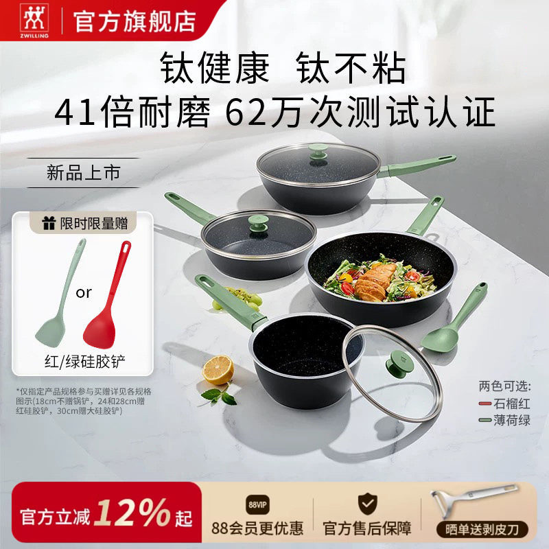 双立人NowPlusⅡ有钛不粘锅套装厨房煎锅炒锅龙铸铁宝宝辅食奶锅