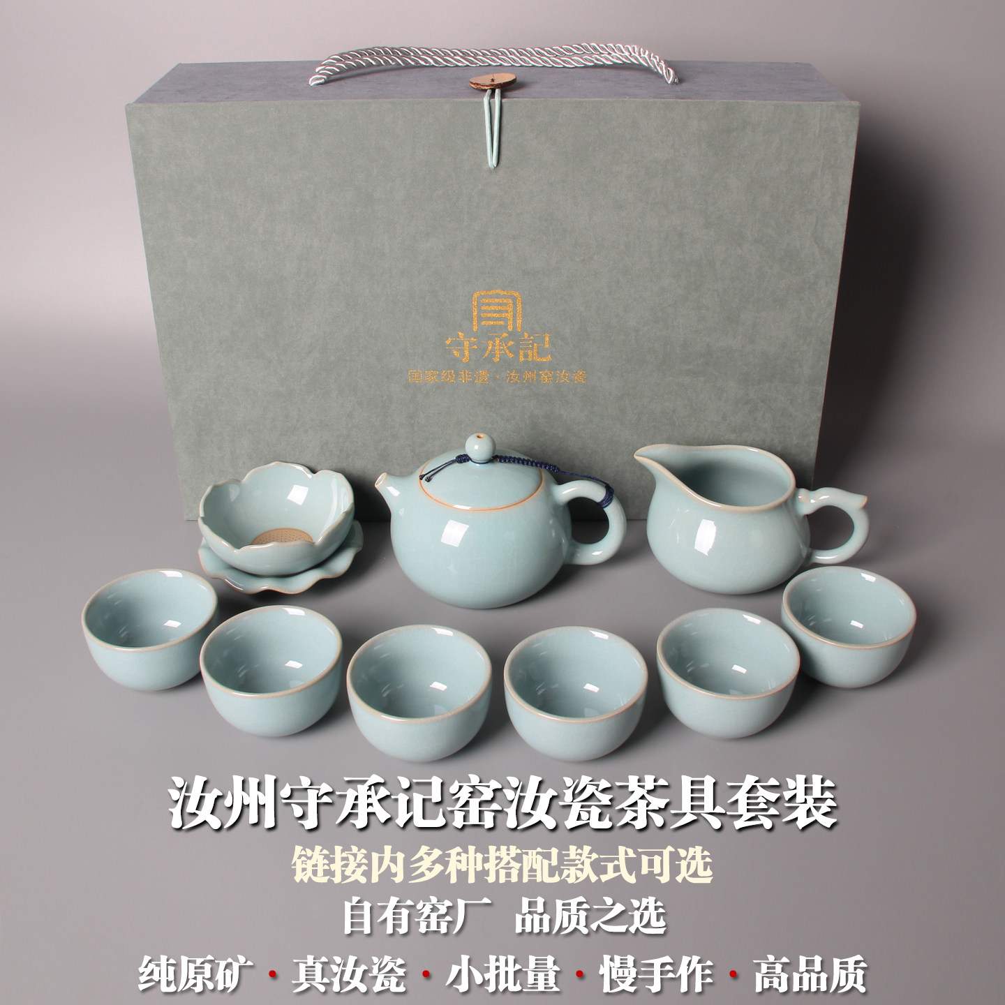 汝窑茶具套装家用礼盒装中式陶瓷景德镇汝瓷功夫茶具开片可养青瓷
