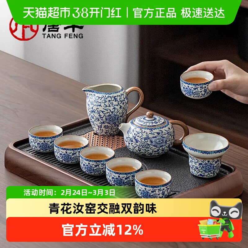 唐丰小型青花汝窑茶具茶台一套家用轻奢高档茶壶茶杯套装2026新款