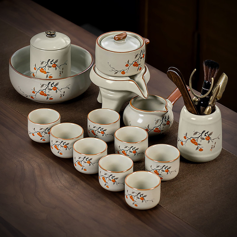 2026新款汝窑茶具套装家用高端精致自动石磨懒人泡茶神器功夫茶壶