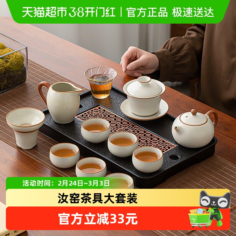 汝窑功夫茶具套装家用2026新款办公室喝茶泡茶盖碗茶壶茶杯子套装
