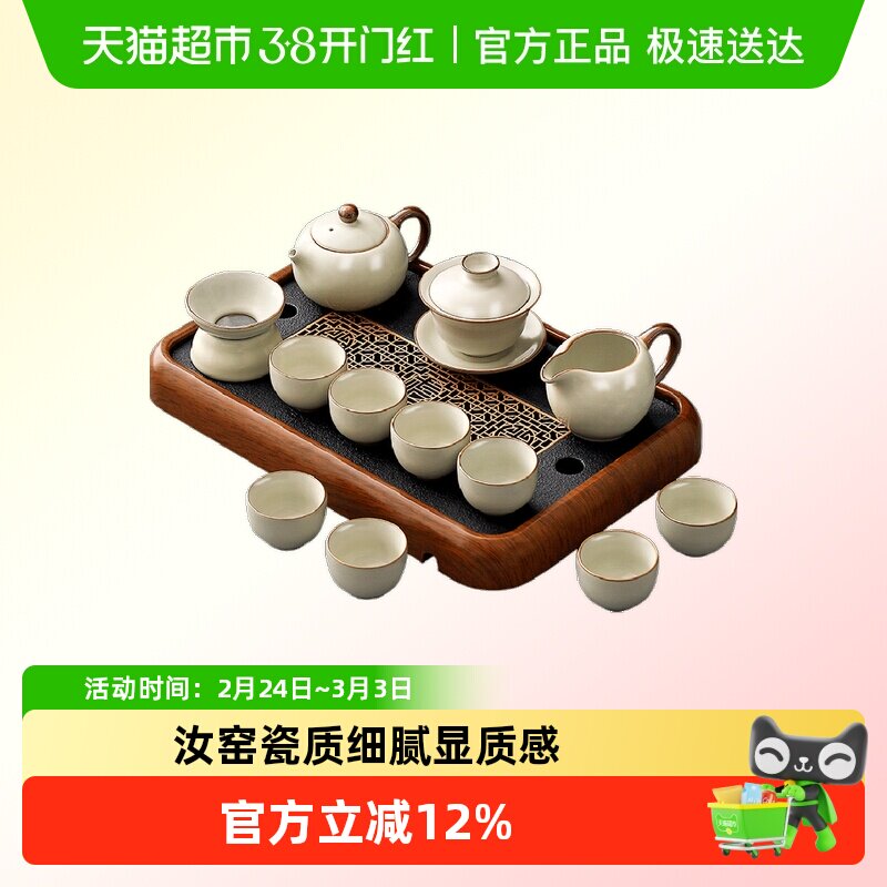 汝窑茶具套装家用泡茶专用陶瓷茶杯茶盘茶壶高档轻奢喝茶功夫茶具