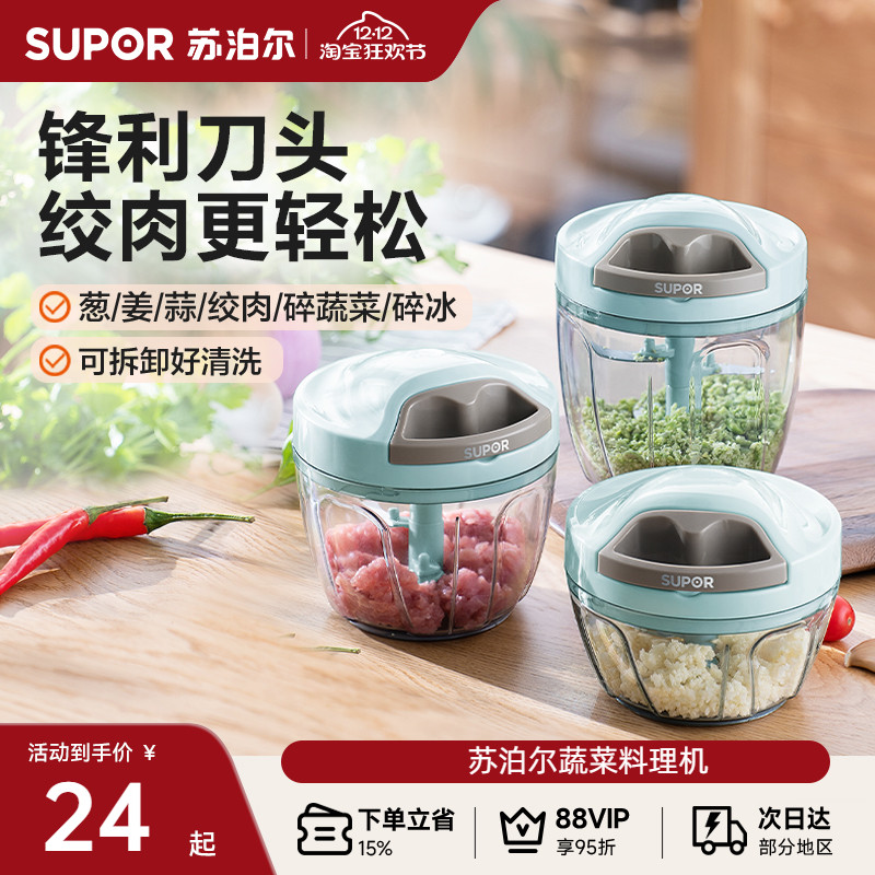 苏泊尔拉蒜神器手动搅碎机捣蒜蓉打蒜压蒜绞肉机手拉式蒜泥器家用
