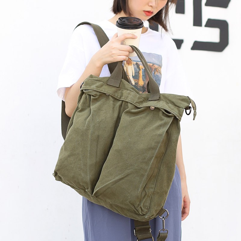 慵懒风帆布双肩背包男通勤多功能复古日韩手提单肩斜挎百搭书包女