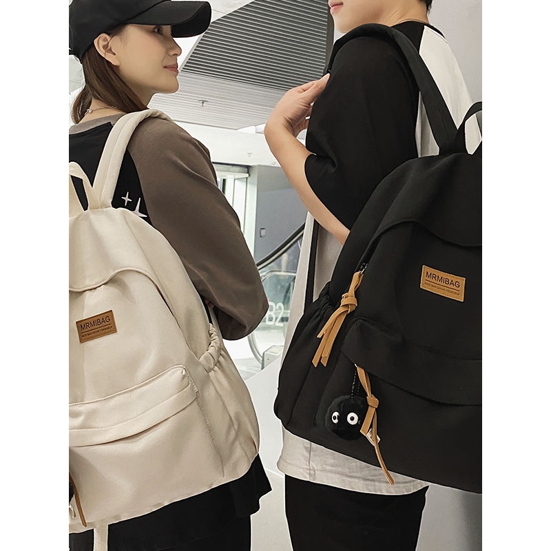 双肩包女2022新款时尚潮流大学生帆布书包简约旅行背包男初中学生