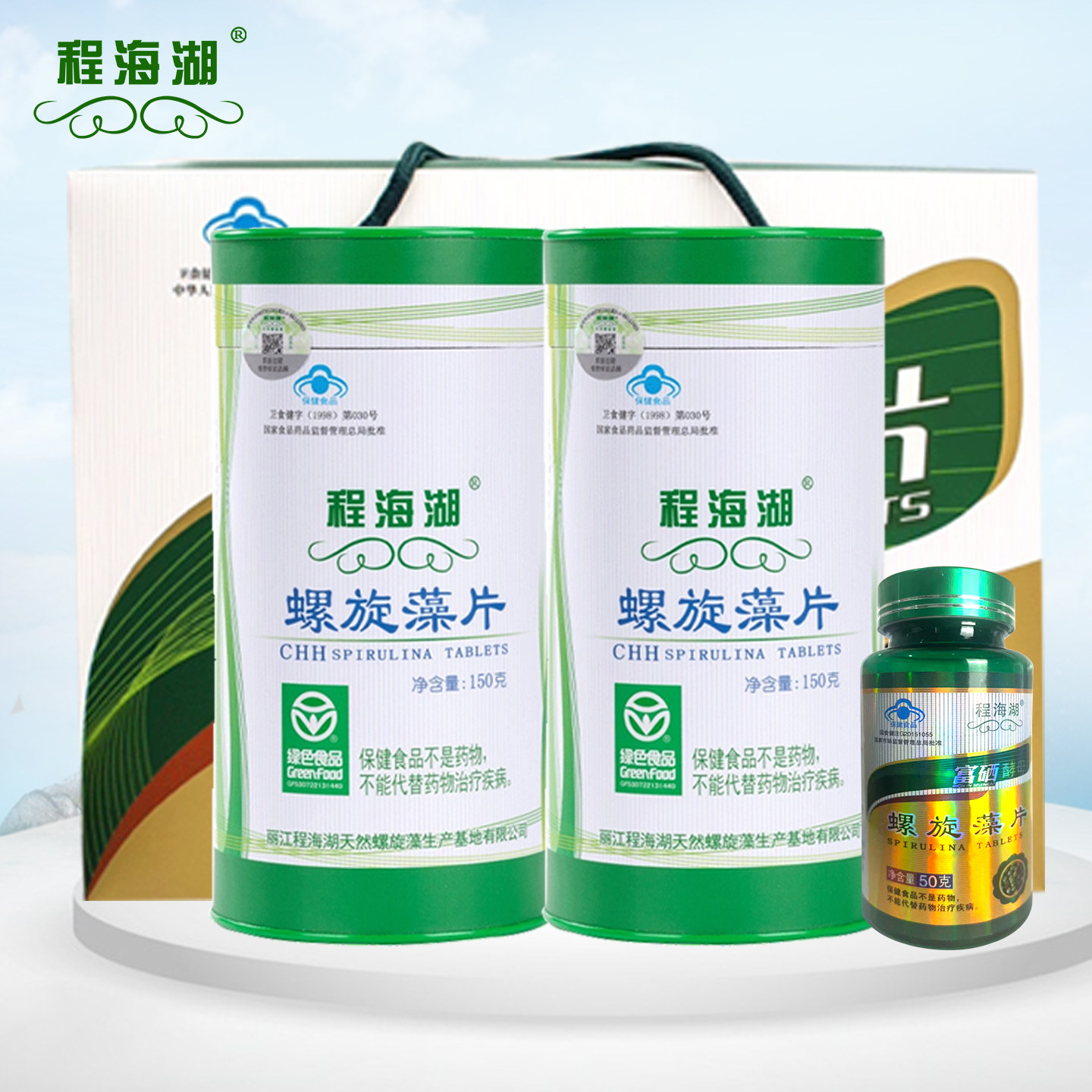 程海湖螺旋藻片150g*2桶+富硒50g礼盒套装云南特产中老年免疫调节