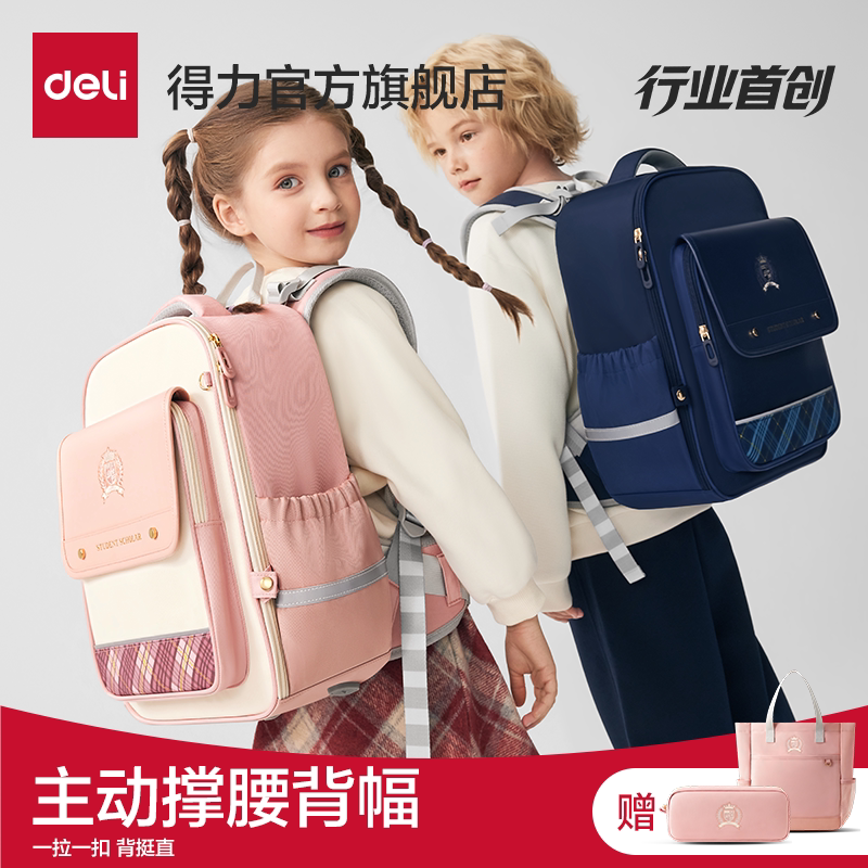 得力撑腰书包小学生男女孩儿童减负护脊一二三六年级2026新款双肩