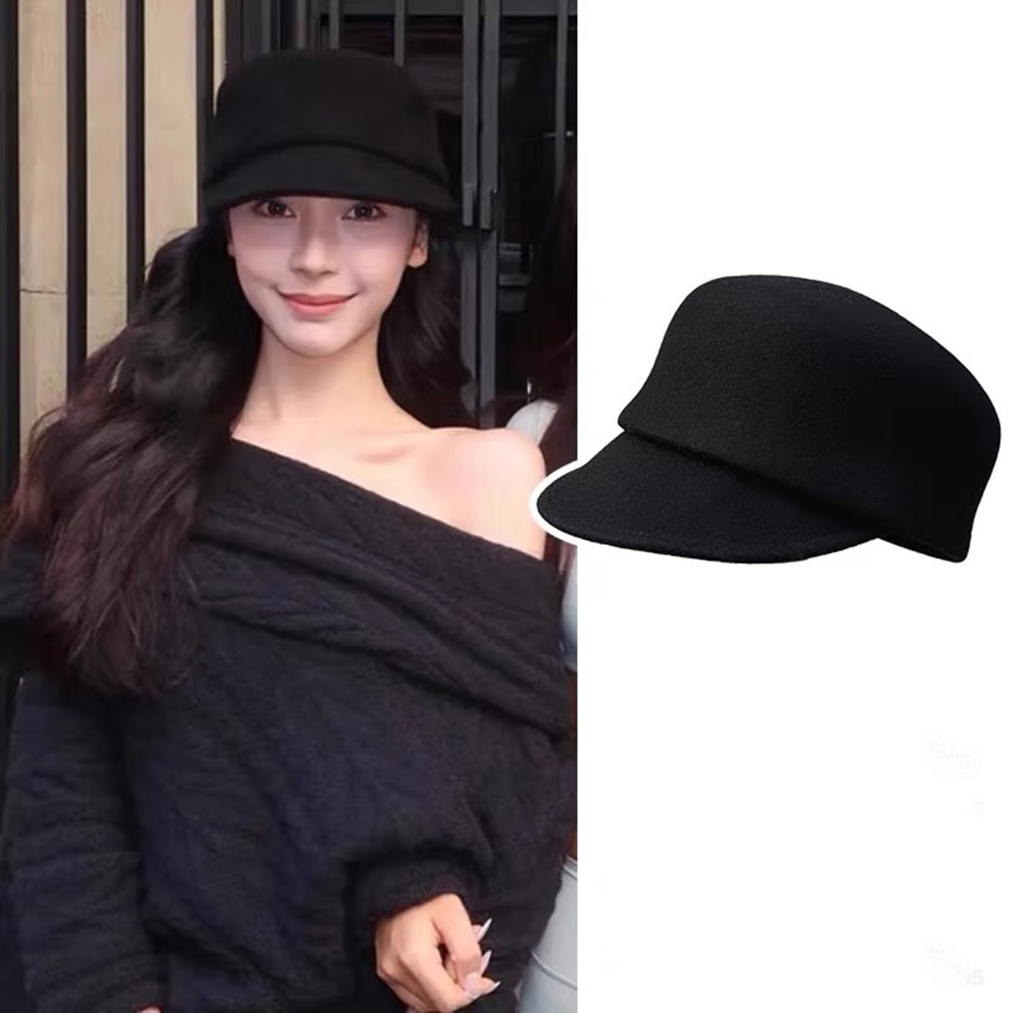张婧仪同款黑色鸭舌帽女秋冬保暖毛呢贝雷帽高级感复古八角报童帽