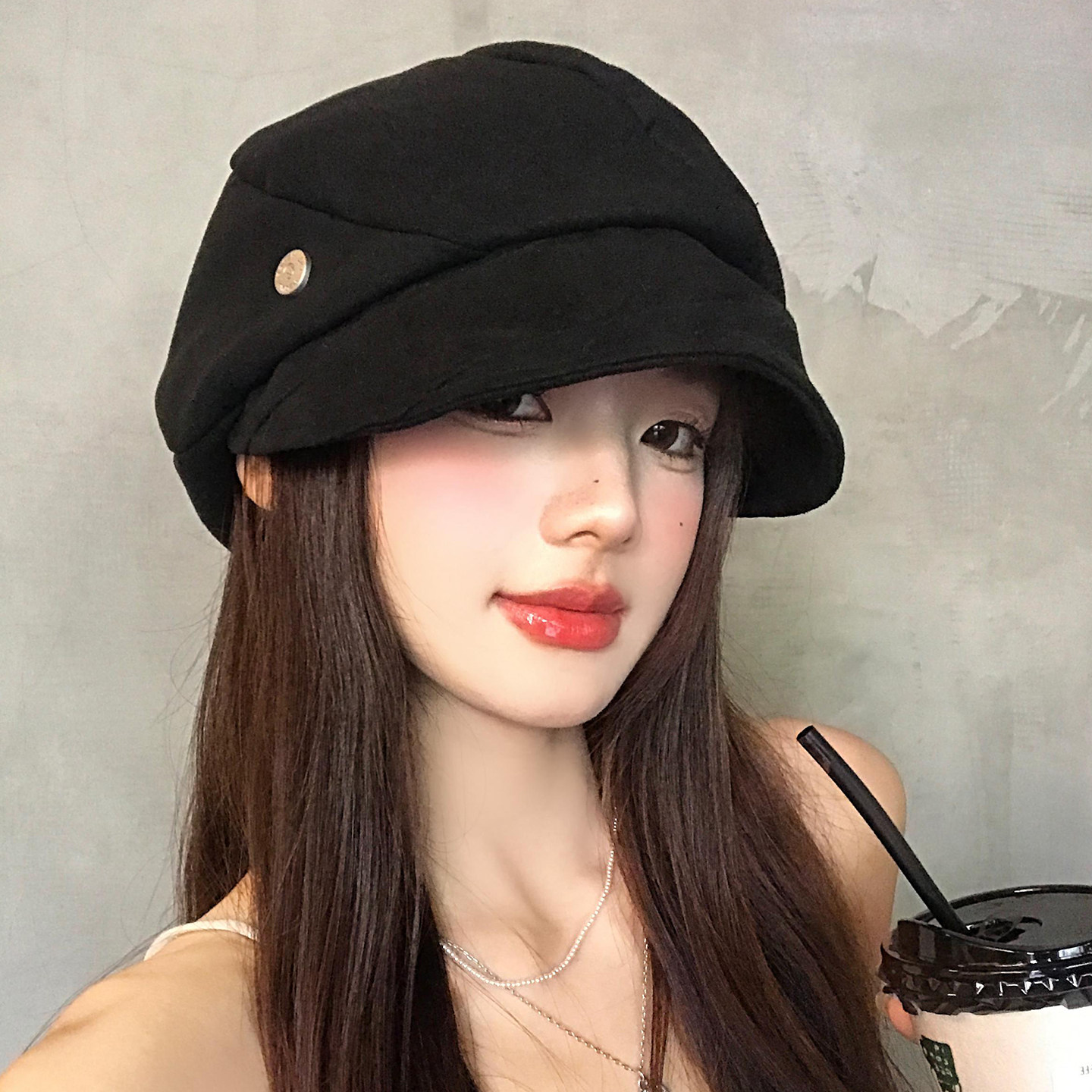 日系复古文艺风黑色鸭舌贝雷帽女休闲百搭气质显脸小八角云朵帽子
