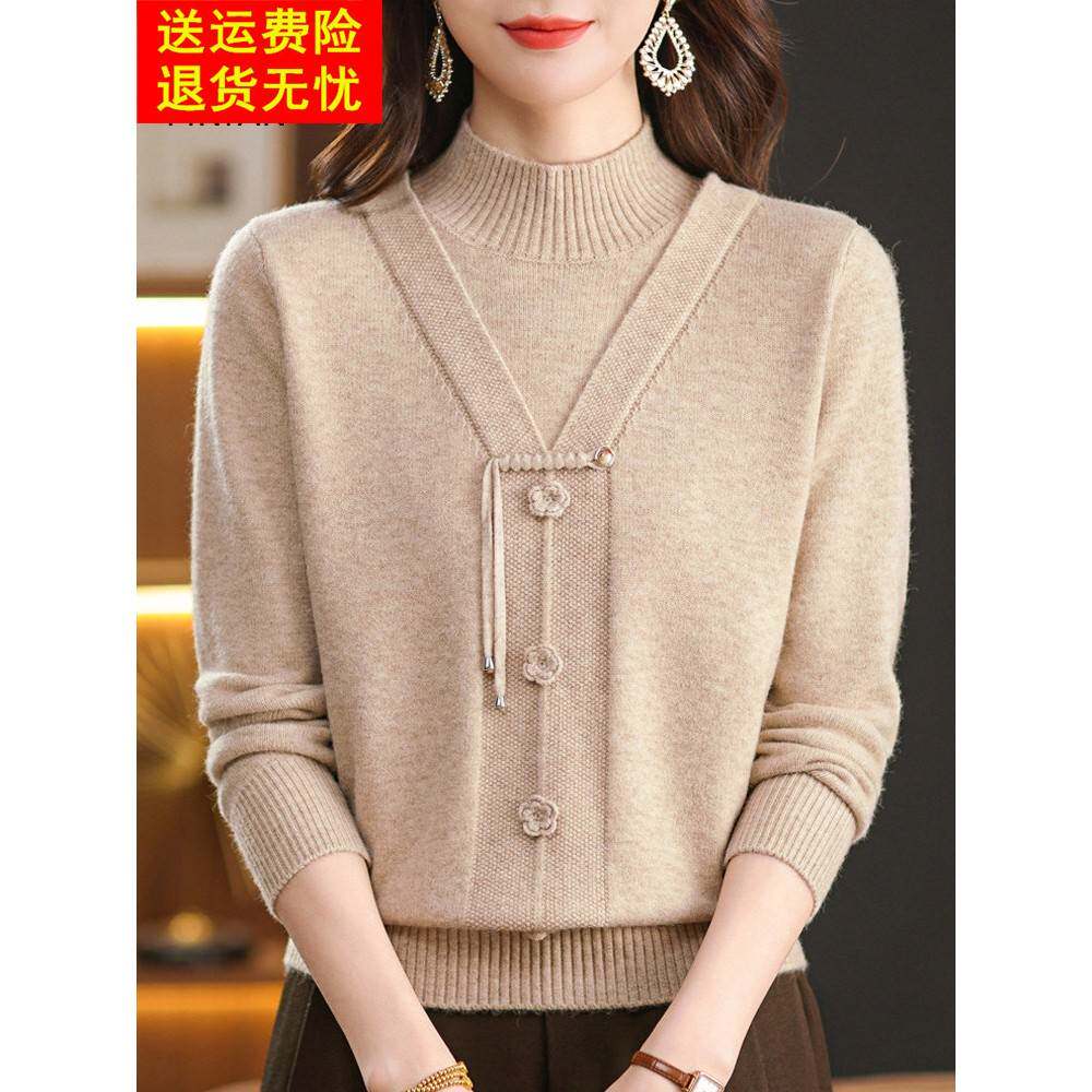 中年妈妈冬装2026新款上衣服洋气中老年毛衣女秋冬季假两件打底衫