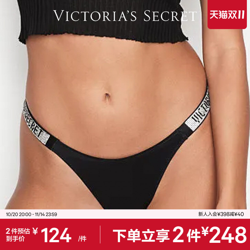 2件248|维密水钻Logo腰带性感美式高腰丁字裤内裤薄款女