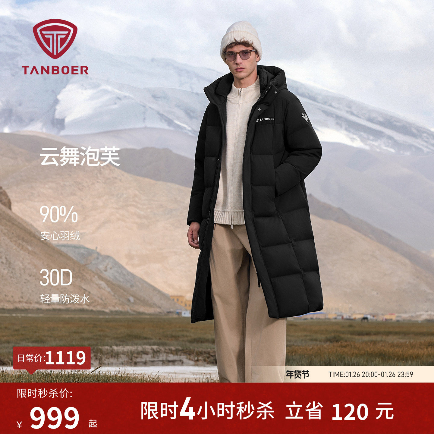 【小田推荐】坦博尔25冬季新款男羽绒服过膝长款连帽防风保暖外套