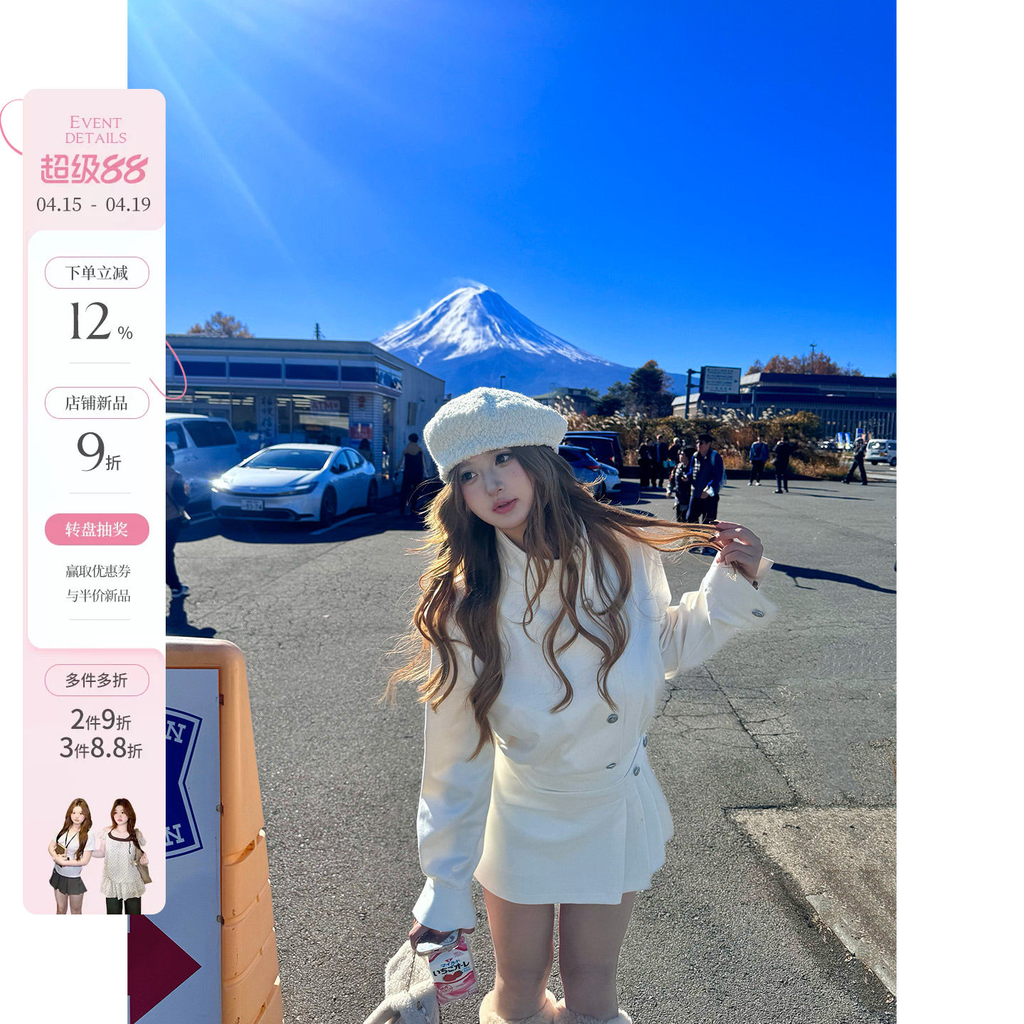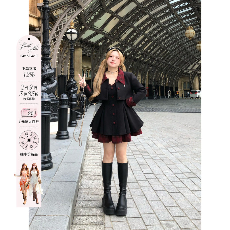 安妮不火 甜酷风呢子连衣裙套装女2025秋冬新款微胖大码两件套装