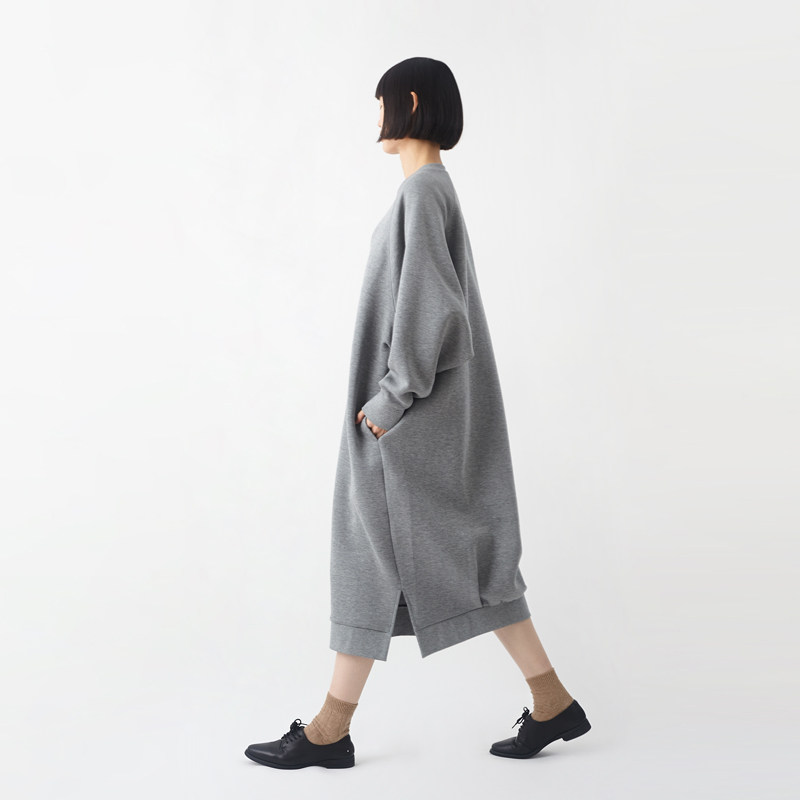 纯色宽松太空棉长袖卫衣裙 小鱼秋冬季新款大码休闲阔型长连衣裙